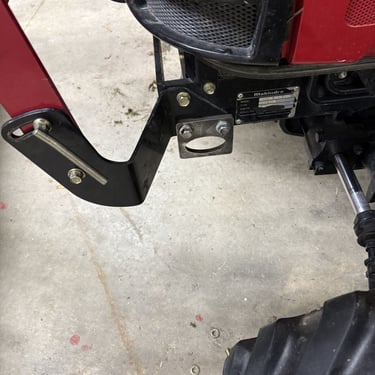 I struggled with good trailer tie down points on my 2638. I used a different point every time to still have the tractor move on the trailer anyhow. A great customer named Greg brought me an idea. A rear tie down that bolts to the draw bar as well as front mounts that bolt on as well.